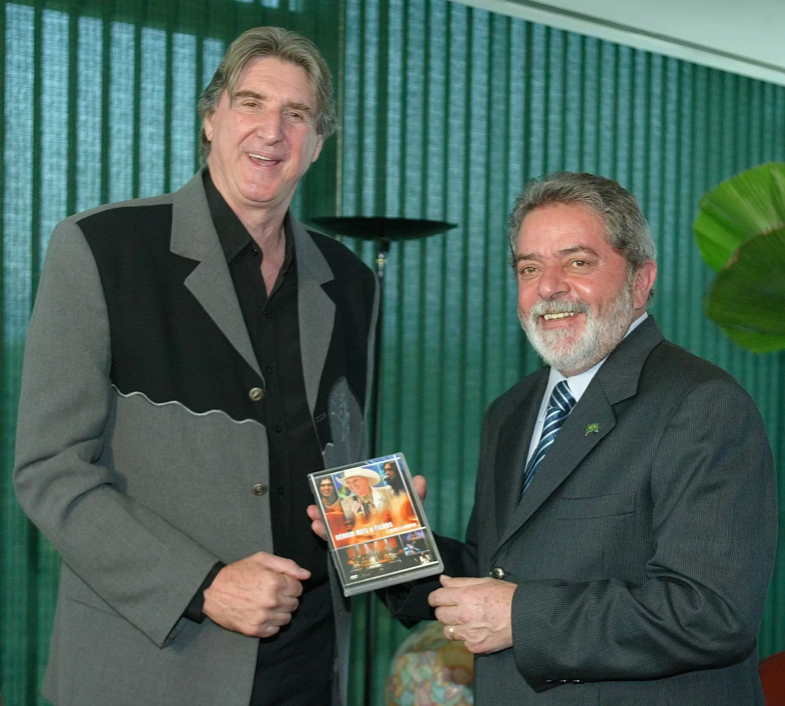 Cinco anos antes, esteve com Lula, puxando-lhe o saco no Palácio do Planalto. Deu-lhe um CD e pediu-lhe que sancionasse uma lei exigindo que os locutores de rádio informem o nome do intérprete e do compositor das músicas tocadas em seus programas.